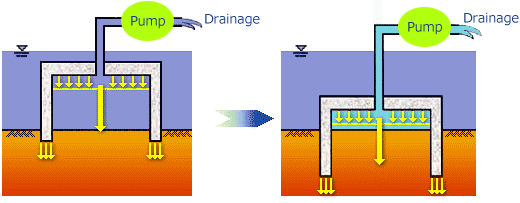 the inside water is drained forcibly using a pump, resulting in difference