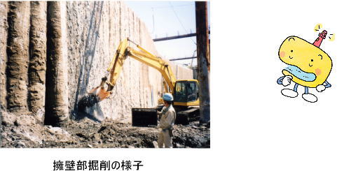 - 仮設山留め壁兼用の液状化対策工法の適用