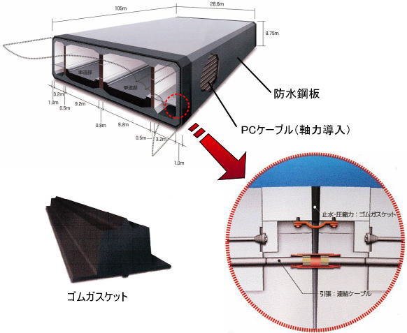 新潟みなとトンネルは、砂質地盤に建設される日本で初めての沈埋トンネルであることから、地震時の挙動と設計法及び耐久性設計が技術課題となりました。設計上の対策は以下のとおりです。