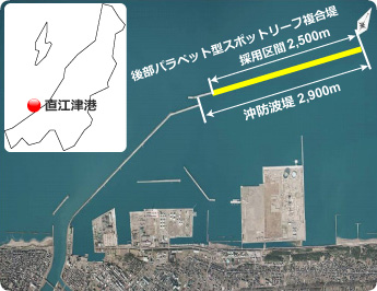 この形式の防波堤は直江津港沖防波堤をはじめ、秋田港、酒田港、伏木富山港、金沢港、輪島港の第一線防波堤で採用されています。